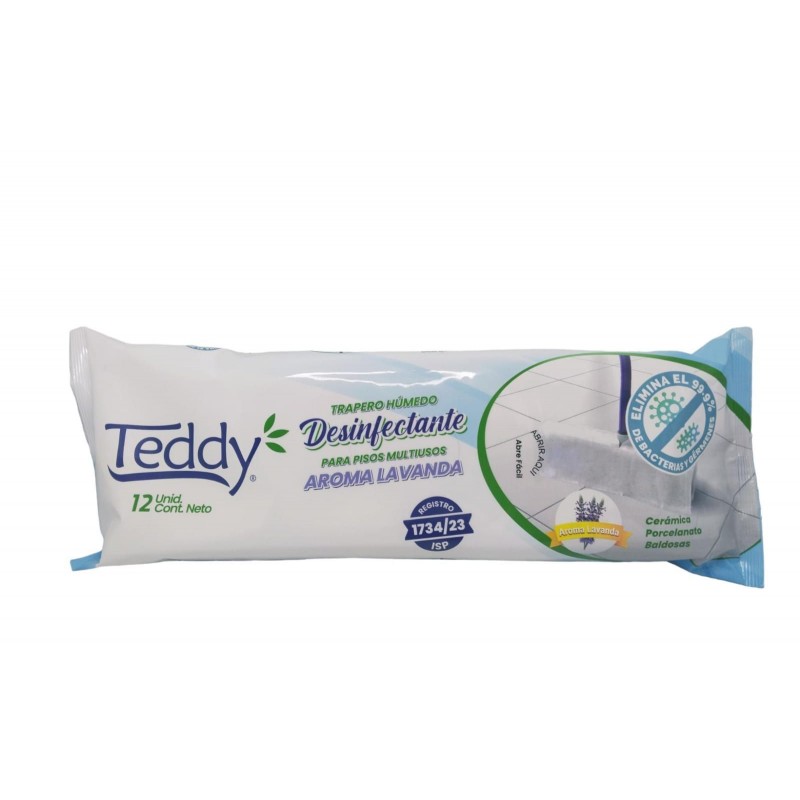 TRAPERO HÚMEDO MULTIUSO DESINFECTANTE CON OJAL, AROMA LAVANDA, MEDIDAS 40x60CMS - 12 UNIDADES